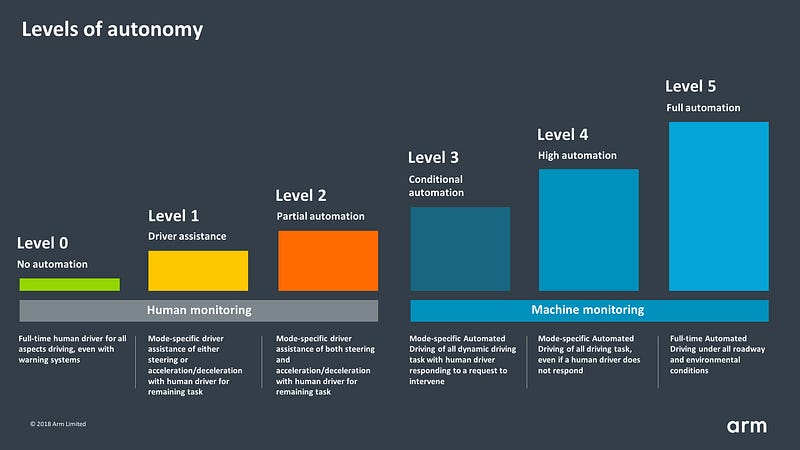 We are currently at level 1.5. All my colleagues feel we are 5–10 years away from level 2. Some project us at 15 years apart. No one I know promotes self-driving cars or planes in our lifetimes. Even if we did, who would use them given the decades of missed expectations and fear?