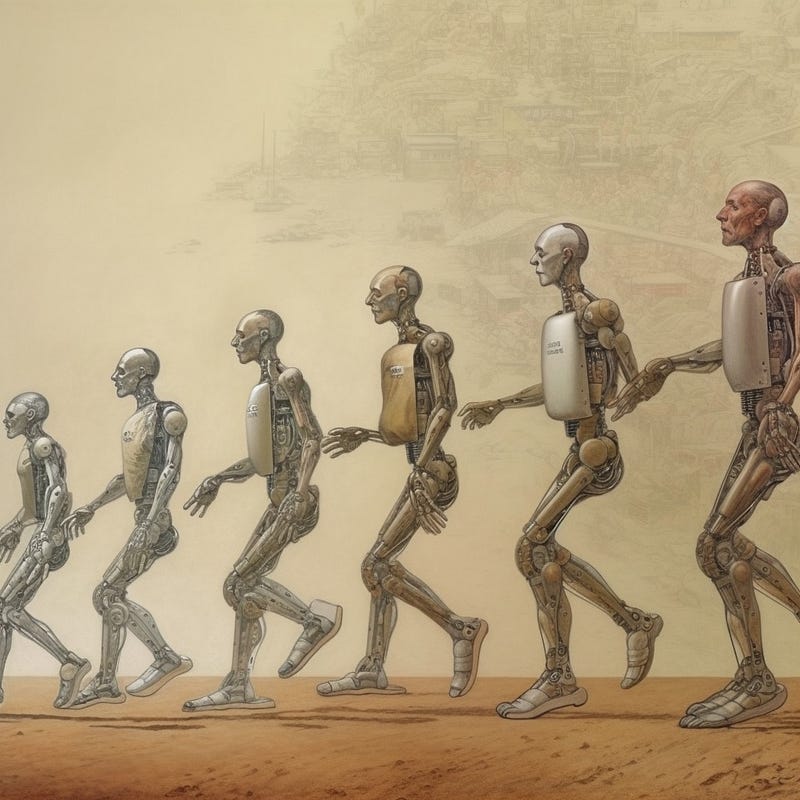The exploration of language as an evolutionary trait and the potential for similar adaptations in AI opens a promising avenue for AI evolution. The realization of this ‘missing link’ could lead to AI models possessing the power of creation, thereby advancing the capabilities of AI significantly. Without More work in this field, our attempts of infecting Artificial Intelligence with language may always end with killing it’s evolution.