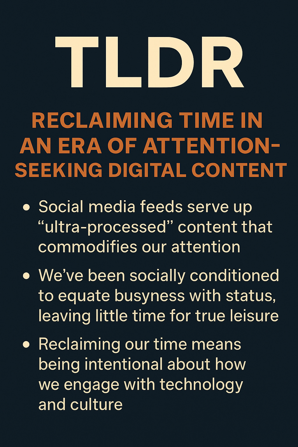 This essay is a reflection on that tension: how artificial intelligence, remix culture, and social media haven’t changed time itself, but have amplified and exposed how we use it, monetize it, and often, perform it. In an age where creation is easy and content is endless, the real challenge isn’t how to be productive. It’s how to be meaningful.